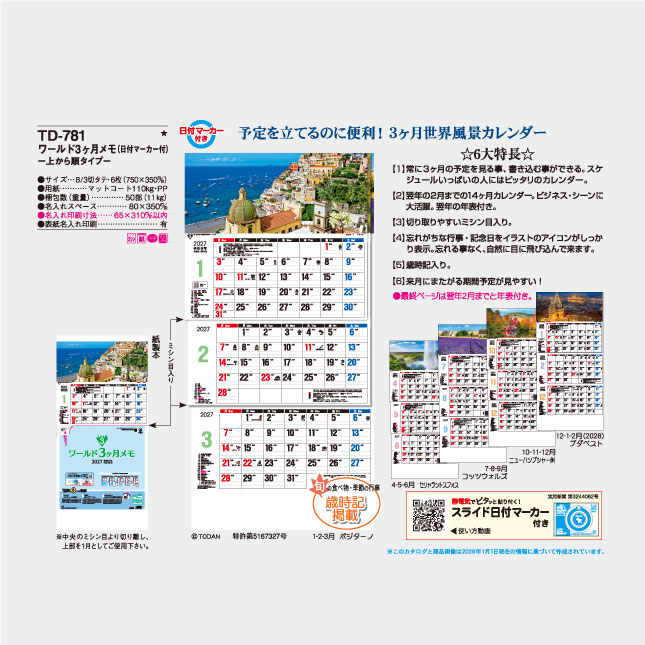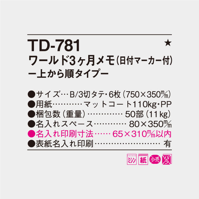 ワールド3ヶ月メモ-上から順タイプ- TD-781 の特徴