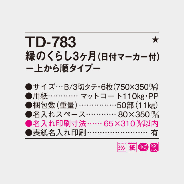 緑のくらし3ヶ月-上から順タイプ TD-783 の特徴