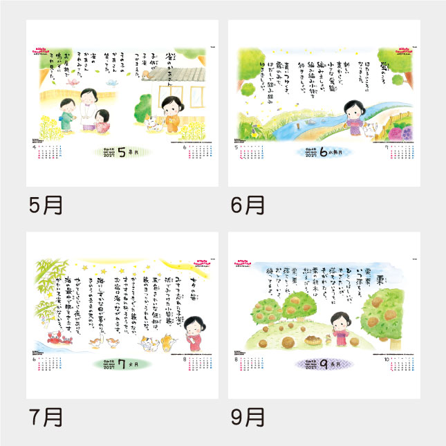 学校の教材でも広く取り上げられる詩人、金子みすゞの詩とやさしい水彩イラストが心に響きます。