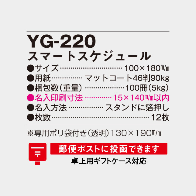 卓上 スマートスケジュール YG-220(SG-939) の特徴