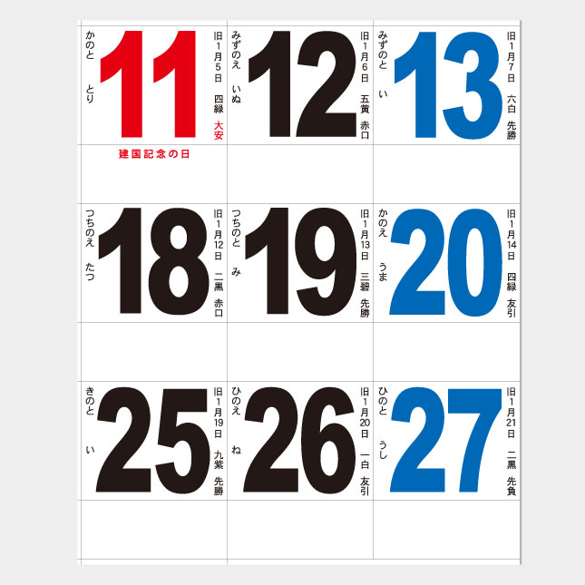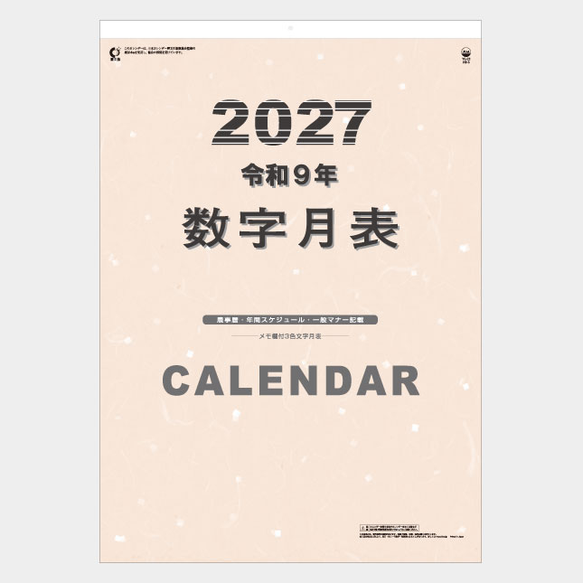 ※このカレンダーは『HB-3 A2 3色数字月表』と同じ商品です。