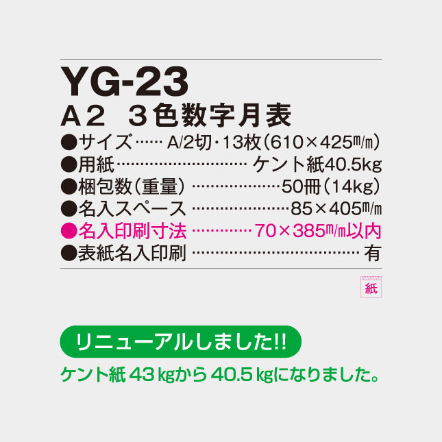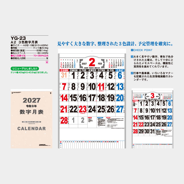 A2 3色数字月表 YG-23(HB-3) の特徴