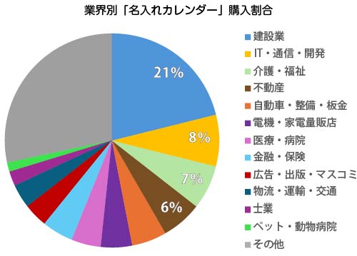 業界別の名⼊れカレンダーの購⼊割合では、「ペット業界」が1%